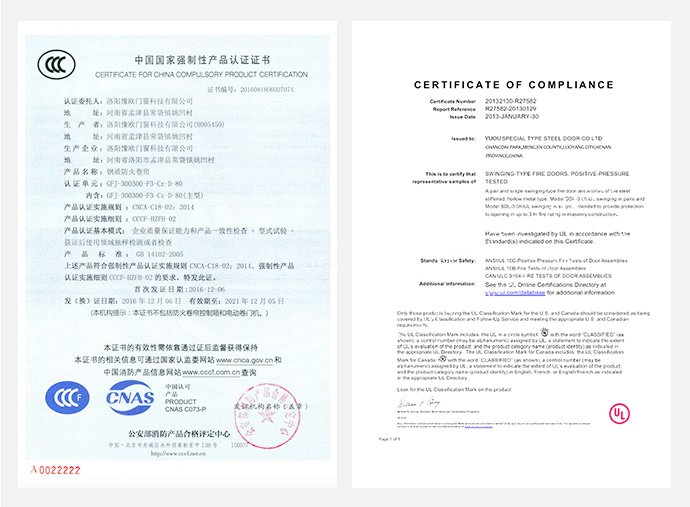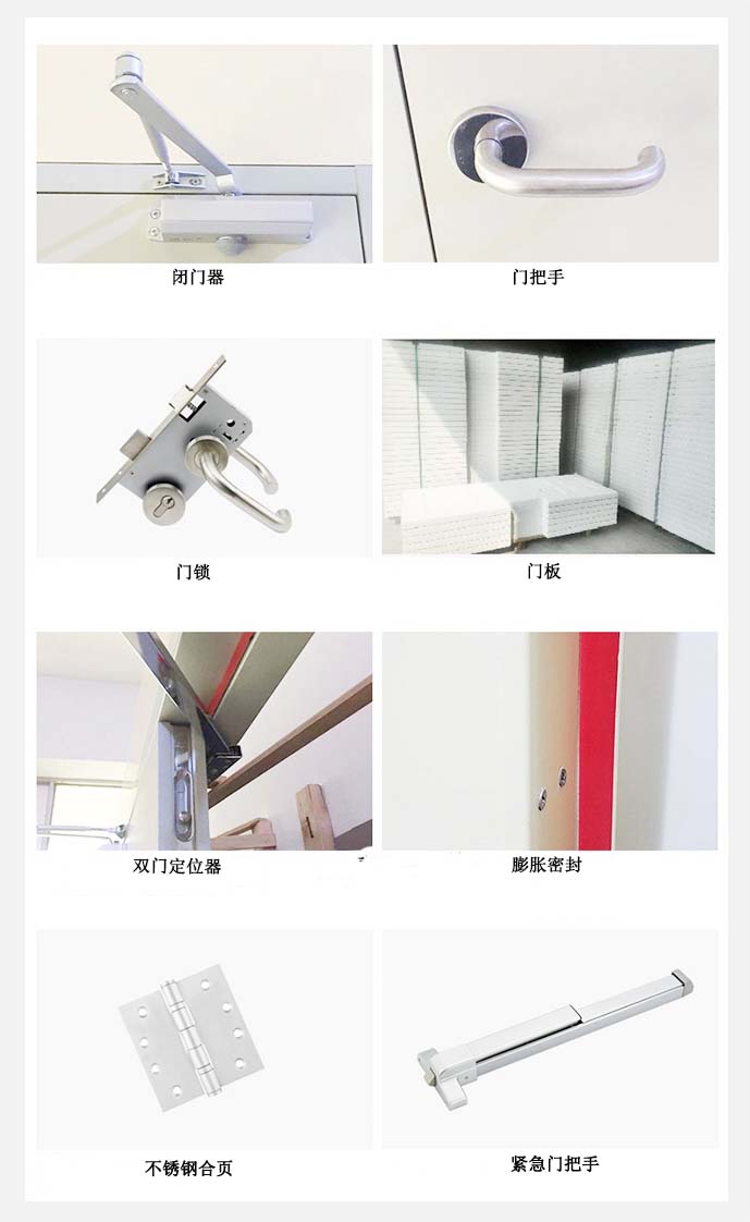 | 門(mén)扇 | 門(mén)扇45毫米厚,門(mén)板1.0mm鍍鋅鋼板 填充料:防火珍珠巖板 |