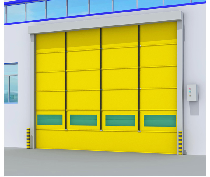 堆積式快速門是快速門當中構造很簡單的一種門型,堆積式快速門一般的組成部分是由動力提升機頭、簾布、抗風桿、立柱、伺服電機、控制箱這幾部分組成。簾布的材質是由1.2mm的單層pvc簾布制成,中間以抗風桿加固,其運行速度達到0.8m/s,相對來說構造簡單,功能上只能起到防風防塵隔離作用。